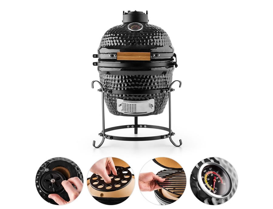 Possui uma superfície utilizável de 27 cm, capaz de suportar um frango verticalmente, 4 grandes hambúrgueres caseiras ou 3 filés. Também pode ser usado para manter os alimentos cozidos aquecidos na mesa de um Kamado de tamanho maior.