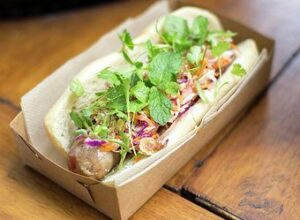 SALSICHA ALEMÃ COM SALADA DE REPOLHO E MENTA