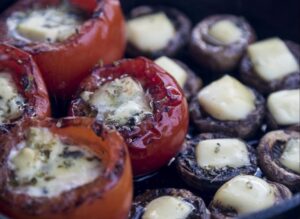 TOMATES E COGUMELOS RECHEADOS NO KAMADO